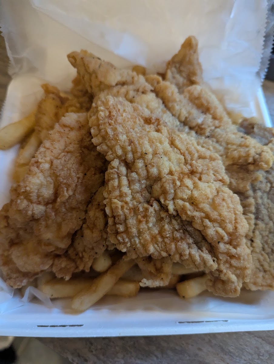 If you want a perfect seafood and fries platter, this is the place to get it. Also, a great way to support a local business and obvious community staple. His customers know him by name and he recognizes them by name also. It was all positive energy.